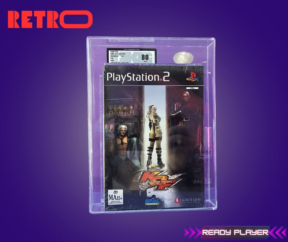 Step into the fast-paced world of The King of Fighters with this UKG 8.0 graded copy of KOF: Maximum Impact for PlayStation 2. Encased and authenticated by UK Graders, this collectible edition preserves SNK’s stylish 3D fighting game in excellent condition—perfect for fans of the franchise and collectors of rare PS2 titles.